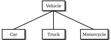 Let's look at an example. Suppose that a program has to deal with motor vehicles, including cars, trucks, and motorcycles. (This might be a program used by a Department of Motor Vehicles to keep track of registrations.) The program could use a class named Vehicle to represent all types of vehicles. Since cars, trucks, and motorcycles are types of vehicles, they would be represented by subclasses of the Vehicle class, as shown in this class hierarchy diagram: